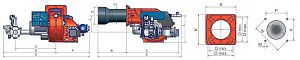 Как и другие модели этой гаммы, горелки могут использовать как стандартной длины сопла, так и длинные. По требованию клиента, могут поставляться распорные детали для достижения необходимой длины проникновения сопла внутрь камеры сгорания.
